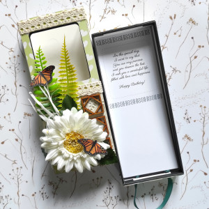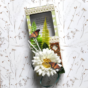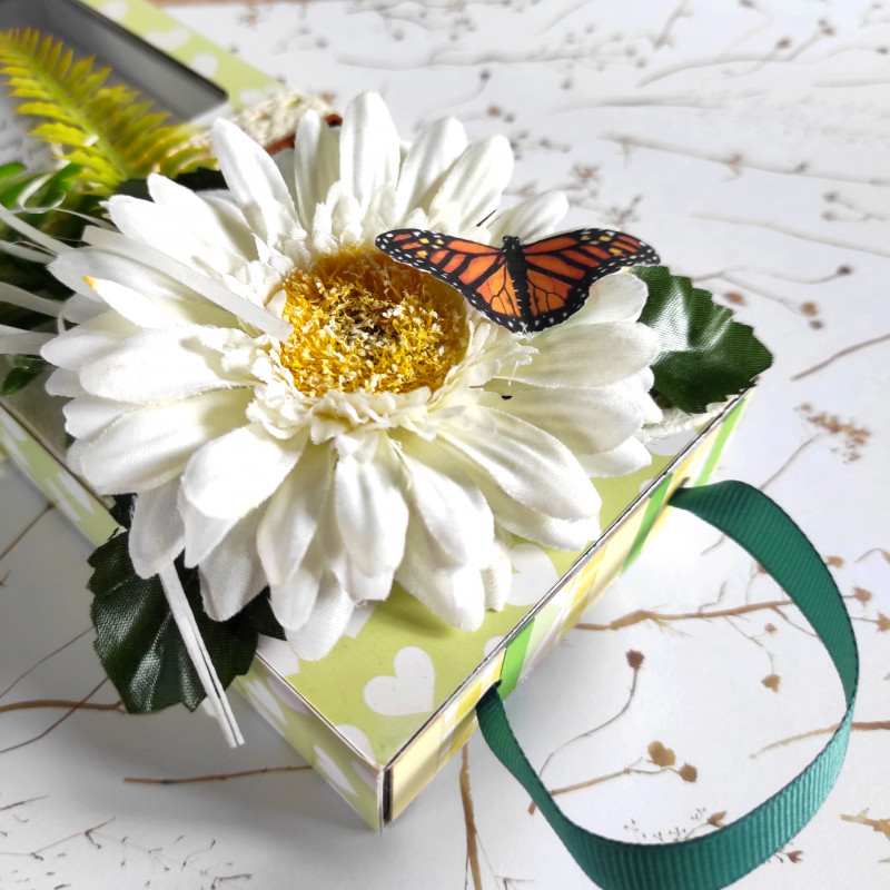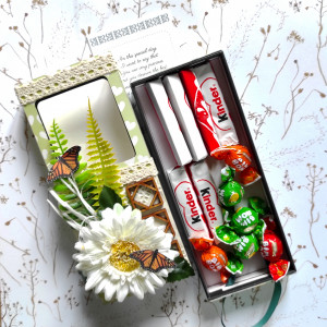 Florystyczna dekoracja, drewniane dodatki i koronka dają mu nieco prowansalski charakter. To idealne rozwiązanie na słodki upominek na Dzień Kobiet, urodziny, imieniny lub inną okazję. Jest bardzo uniwersalne i dopasuje się do twoich potrzeb.