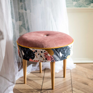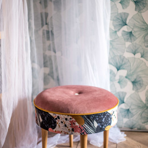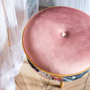 Tapicerowana okrągły podnóżek wykonany od podstaw w naszej pracowni. Wymiary: średnica 45 cm, wysokość 40 cm. Nogi drewniane (buk)- zabezpieczone olejem do drewna (mogą być zabarwione na inny kolor) Idealnie sprawdza się jako podnóżek do ulubionego fotela lub kanapy, a także jako dodatkowe siedzisko dla gości. Jest to ciekawy element wystroju wnętrza, który sprawdzi się zarówno w mieszkaniu, jak i w lokalach komercyjnych (kawiarnia, hotel itp.) Podnóżek możemy wykonać w dowolnej tkaninie i w różnej kolorystyce, w wersji z guzikami lub bez – bardzo chętnie realizujemy indywidualne pomysły klientów. Z naszej strony mogą Państwo liczyć również na pełne doradztwo w wyborze wzorów i kolorów.