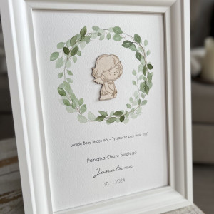 Pamiątka chrztu w ramce - obrazek z personalizacją i życzeniami na chrzest