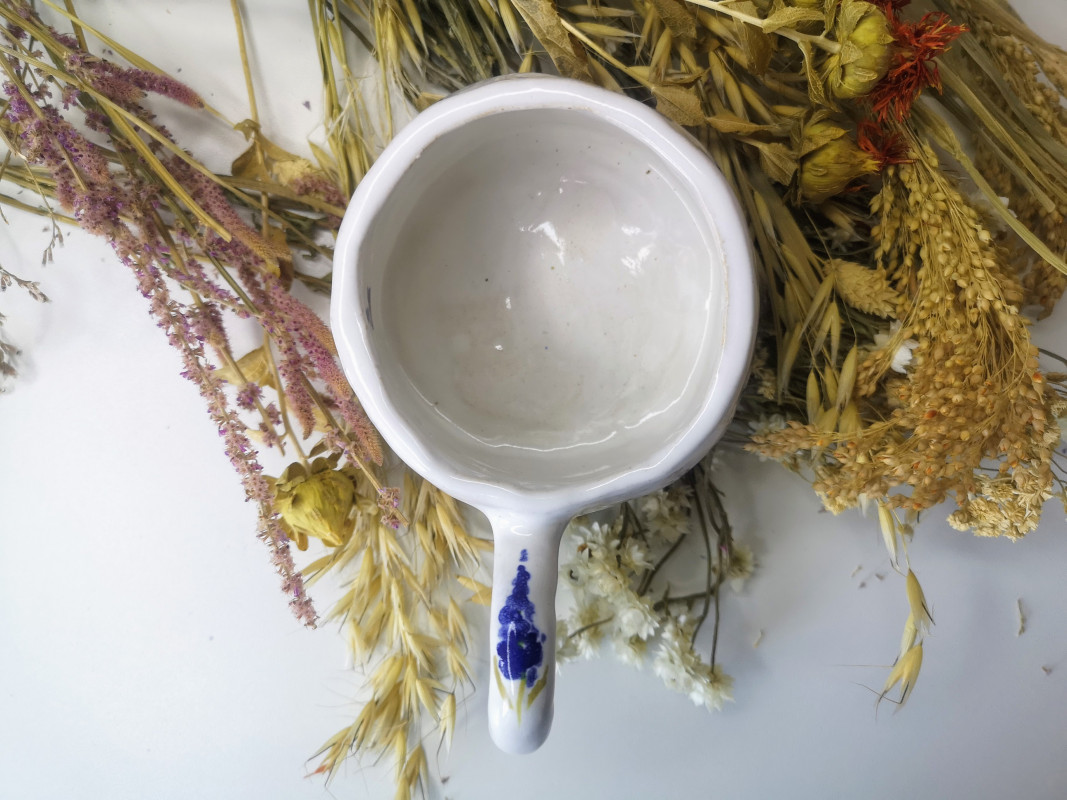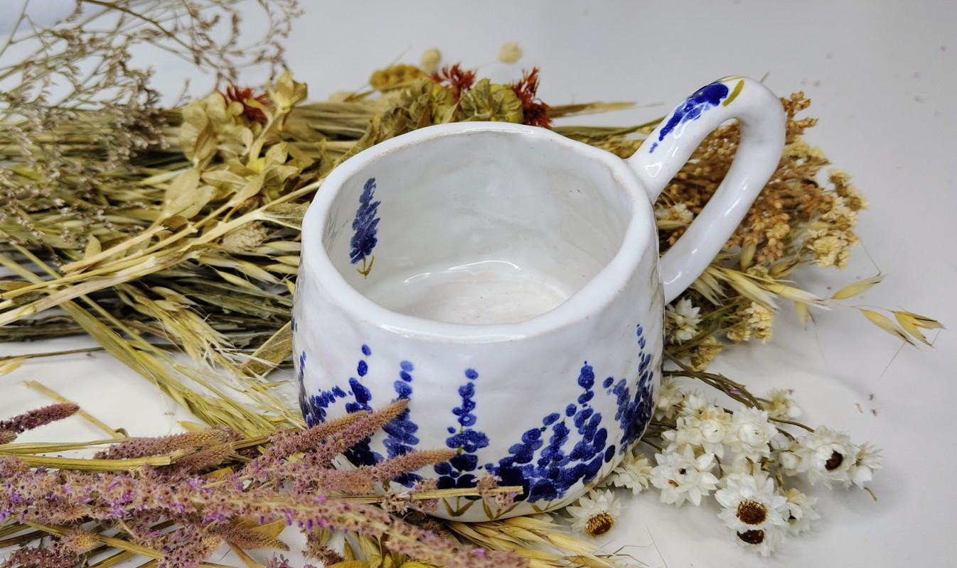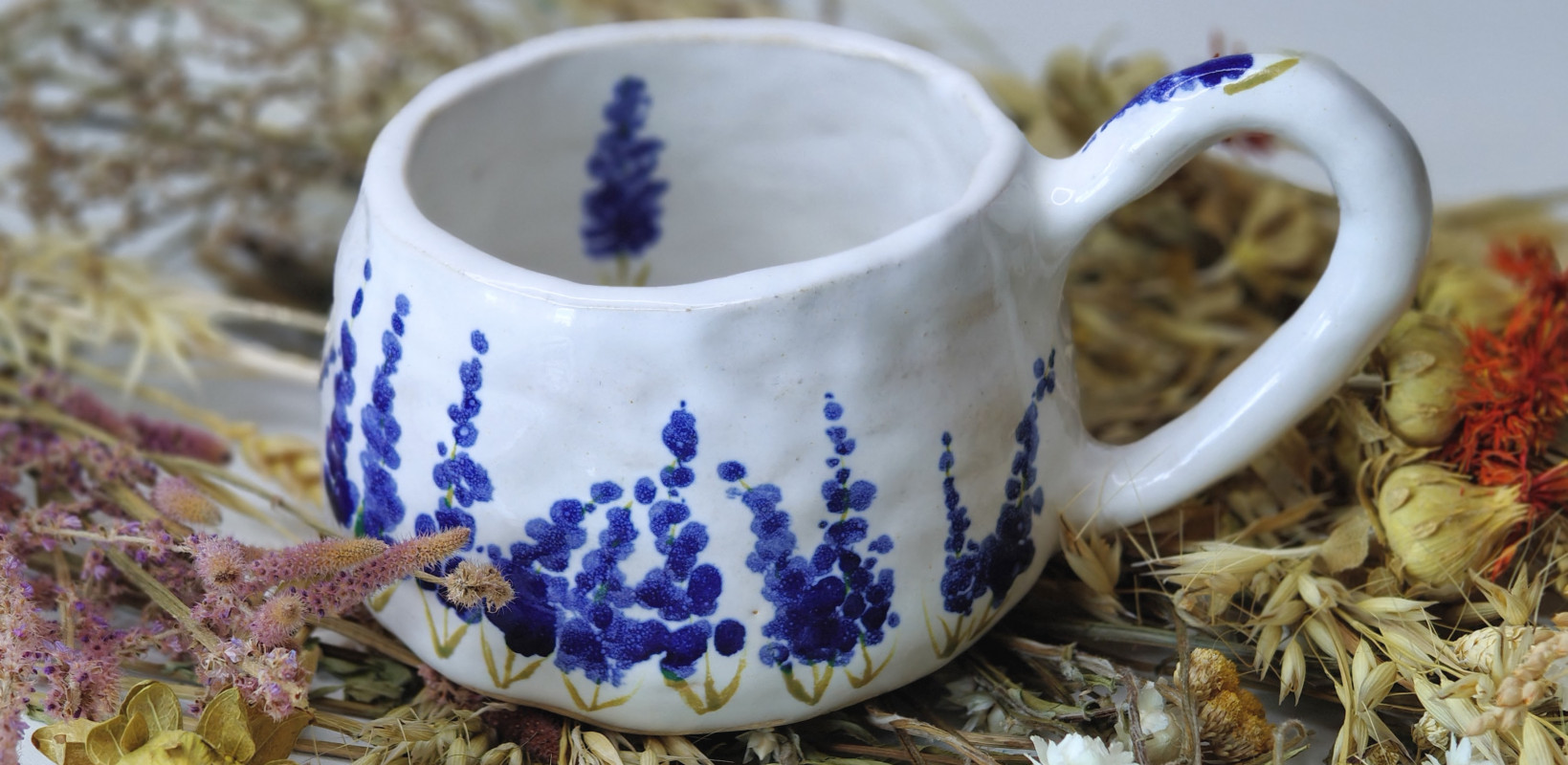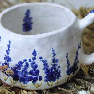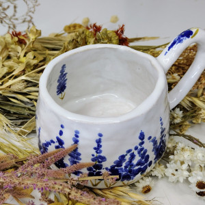 Ręcznie robiony kubek, duża filiżanka w kwiaty, lawenda, szałwia