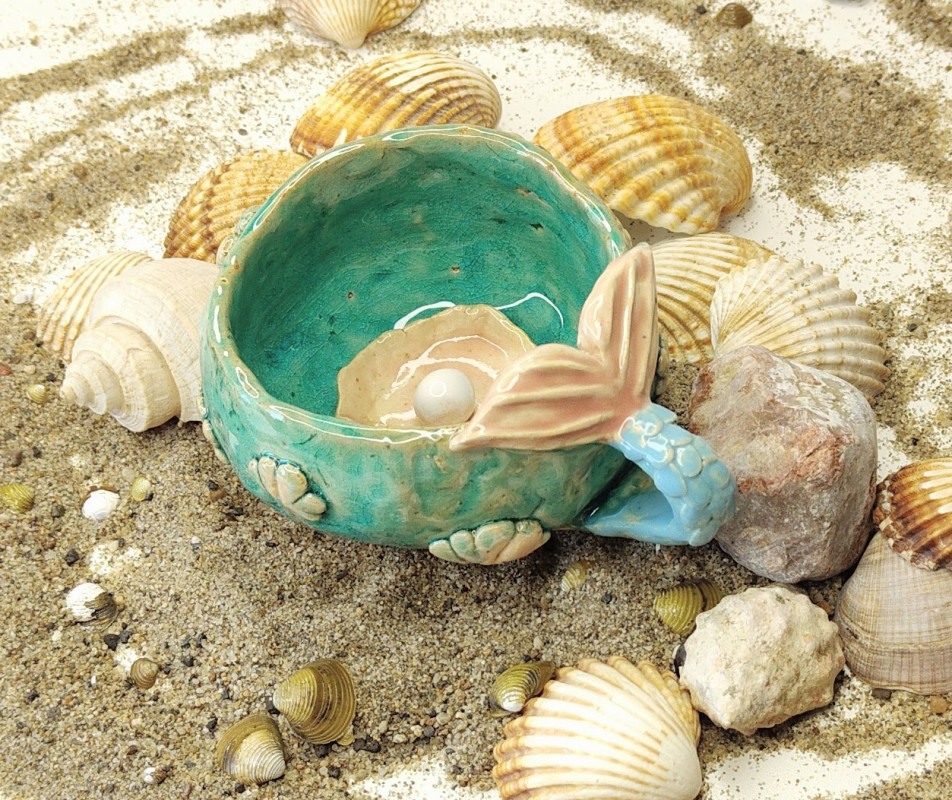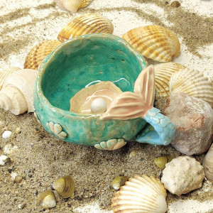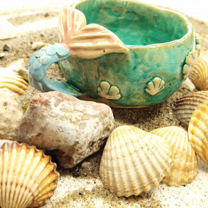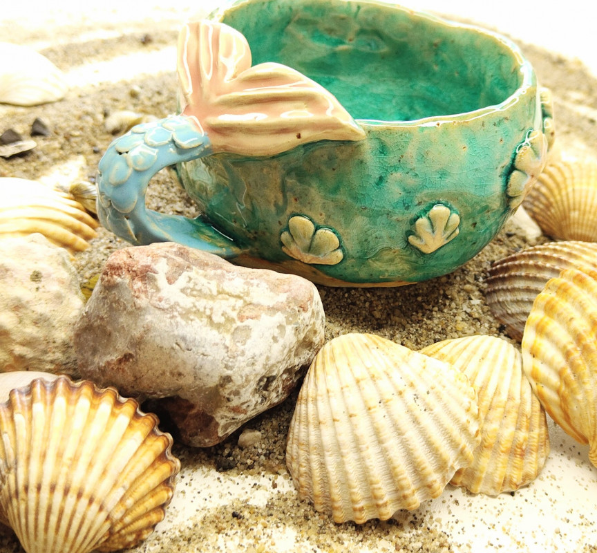 Ręcznie robiony morski kubek/filiżanka z syrenim ogonem