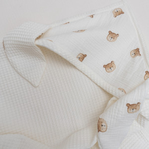 Zarówno tkanina wafelkowa, jak i bawełna posiadają certyfikaty OEKO-TEX, są w pełni bezpieczne dla dzieci.
