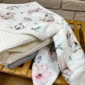 Zarówno tkanina wafelkowa, jak i bawełna posiadają certyfikaty OEKO-TEX, są w pełni bezpieczne dla dzieci.
