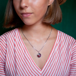 Uroczy naszyjnik z medalionem, w którym umieszczona jest autorska ilustracja. Ilustracja malowana jest w oryginale przez Kaję Gościniak, a miniatura ilustracji jest zatapiana pod szkiełkiem i oprawiona w medalion ze stali nierdzewnej, antyalergicznej. Ta metoda daje efekt tajemniczości i głębi medalionowi, kolory stają się jak żywe.