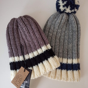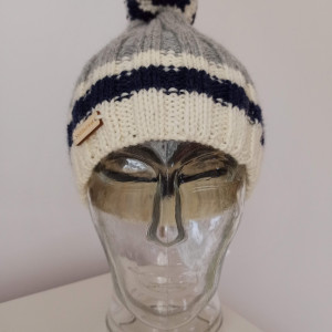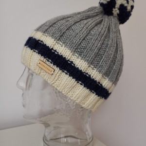 Ciepła wełniana czapka z puszystym pomponem i z paskiem nadającym wyrazisty charakter.