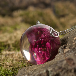Wisior wykonałam z transparentnej żywicy, w której zatopiłam różę.