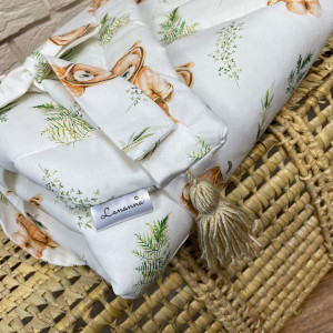 Rożek z tkaniny 100% bawełnianej premium (dodatkowo wkład kokosowy) Produkt szyty na zamówienie. Czas realizacji 3-5 dni roboczych. Możliwość personalizacji haftem z imieniem dziecka Wymiary: 75 cm x 75 cm (+/- 2 cm). Wkład w środku jest antyalergiczny, przyszyty na stałe do tkanin, nie przemieszcza się podczas użytkowania oraz prania. Rożek uszyty z tkaniny 100% bawełniana premium. Z tyłu kieszonka na wkład kokosowy (w zestawie). Wkład jest dodatkowo obszyty tkanina bawełnianą. Rożek można wykorzystać także jako kocyk, kołderkę czy matę. Bawełna użyta do produkcji rożka jest jakości premium, nadruk jest niezwykle trwały, kolory są intensywne. Tkanina posiada certyfikaty bezpieczeństwa OEKO-TEX, jest bezpieczna dla najmłodszych. Należy prać w 40 stopniach C, wirować na niskich obrotach, nie stosować wybielaczy, prasować w temperaturach do 100 stopni C, nie suszyć w suszarce bębnowej. Na ten produkt przyjmujemy indywidualne zamówienia. Można zmienić kolor chwościków, wielkość rożka oraz grubość. W przypadku tego typu zamówień czas wydłuża się i jest ustalany po omówieniu szczegółów. Należy wziąć pod uwagę, że zdjęcia produktów są zdjęciami poglądowymi. Produkt w rzeczywistości może nieco odbiegać kolorem i układem wzoru. Rożek wykonany w Polsce.