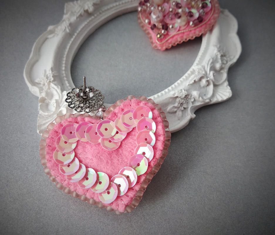Tył kolczyków jest wykończony filcem i błyszczącymi cekinami. Są więc atrakcyjne z dwóch stron.