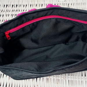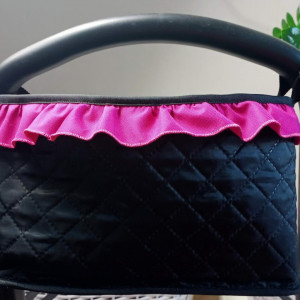 Można go przymocować do pałąka lub rączek dowolnego modelu wózka. W przypadku zabrudzenia wystarczy przetrzeć wilgotną ściereczką. W środku spora bezpieczna kieszonka zapinana na zamek, na tel. czy portfel. Całość usztywniona, a dno dodatkowo. Trzyma fason.