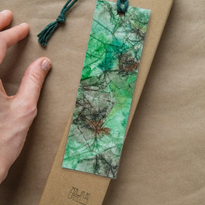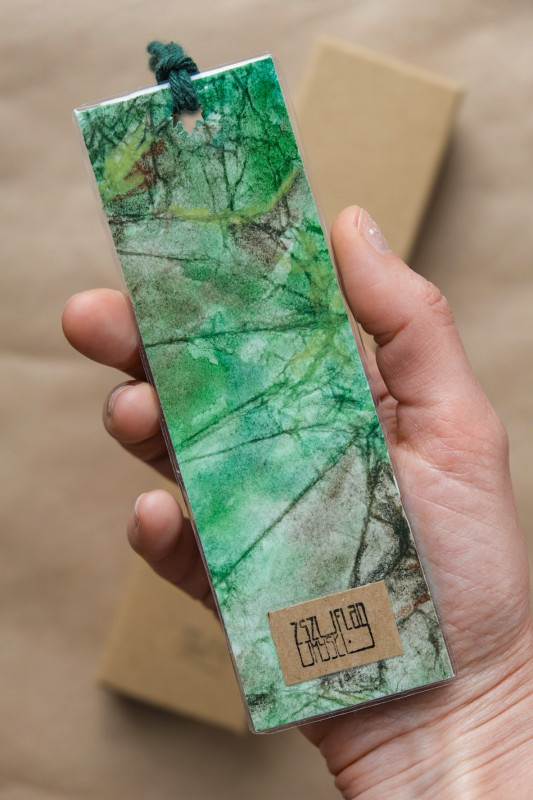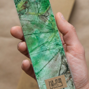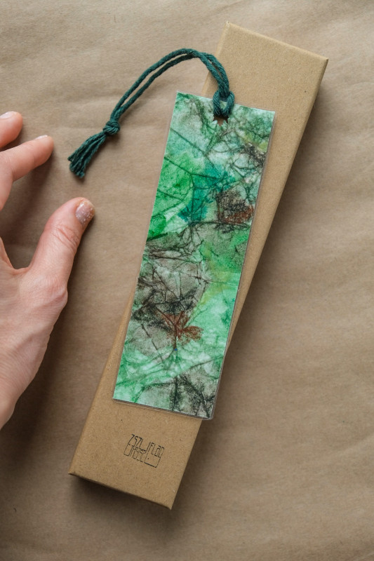 To nie jest zwykła zakładka. To unikatowe dzieło sztuki, stworzone ręcznie, z duszą i sercem. Malowana akwarelami, kredkami, ołówkiem. To abstrakcyjny pejzaż lasu w barwach, które ukoją Twój umysł: zieleniach, brązach, beżach, rudościach.