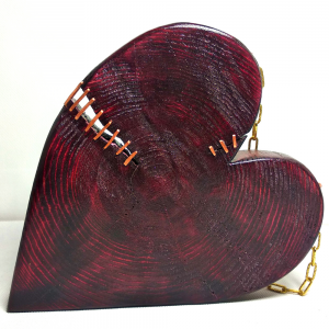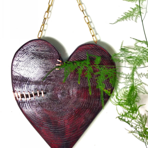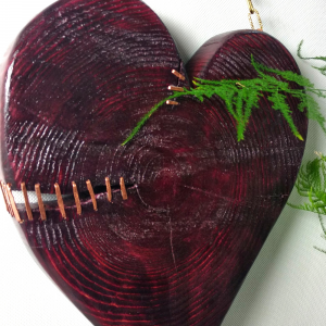 Wykonane z najwyższą starannością, to serce jest symbolem miłości, nadziei i odnowy. Jego głęboki, czerwony kolor i naturalne słoje drewna tworzą unikalny i urzekający wygląd. Serce jest ozdobione miedzianym szwem, który symbolizuje proces uzdrowienia i odrodzenia.