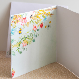 Kupujesz dokładnie kartkę ze zdjęcia. Baza kartki biała, ale dodatkowo ma dwie kolorowe strony, które dodają jej uroku