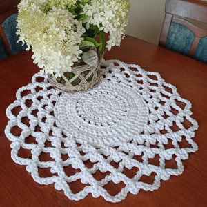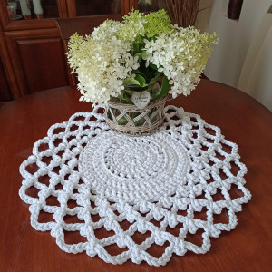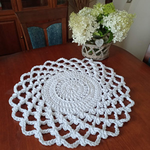 Serweta o średnicy 60cm, wykonana metodą szydełkowania z polskiego sznurka bawełnianego 5mm.