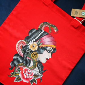 Wzór stworzony przy użyciu najwyższej jakości akrylowych farb do tkanin jest trwały i wodoodporny. Torbę można prać ręcznie w temperaturze maks. 30 stopni bez użycia odplamiaczy. Nie ugniatać i nie wirować. Nie prasować bezpośrednio malowanej powierzchni.