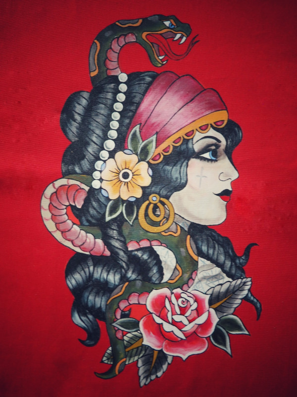 WZÓR: tatuaż, Cyganka, wąż