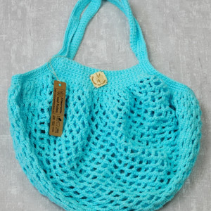 Paryżanka wykonana ręcznie, na szydełku, z włóczki bawełna+akryl. Idealna na zakupy, na plażę... Długość rączek: 45 cm