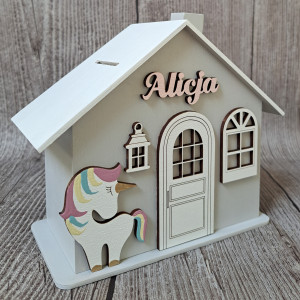 skarbonka w kształcie domku, to idealny prezent dla każdego dziecka na różne okazje.