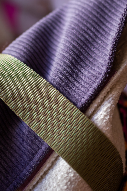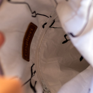 Regulowane paski. W środku biała, bawełniana podszewka oraz mała kieszonka na suwak.