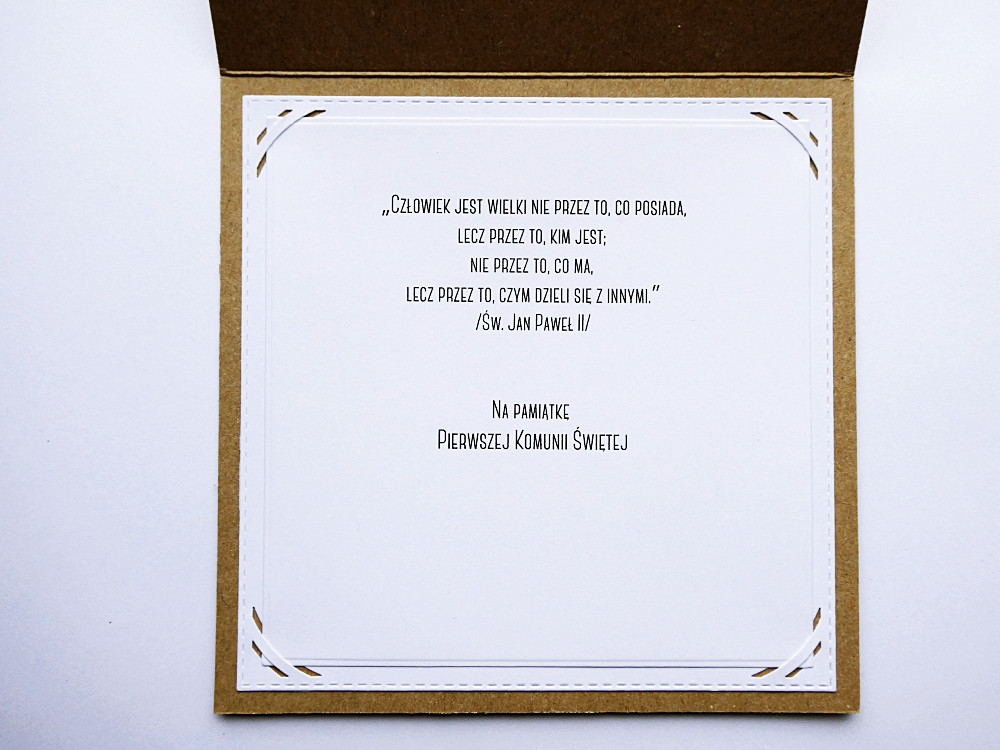 Ręcznie wykonana kartka z okazji Pierwszej Komunii Świętej w komplecie z białą kopertą - prosta i skromna.