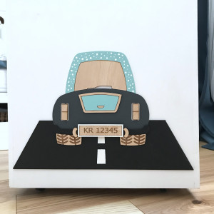 W tym projekcie autko naklejone jest na front i tylną ściankę skrzyni. Skrzynia „zamienia się” w jadące autko, do którego dziecko wrzuca swoje klocki lub inne zabawki. Sprzątanie pokoju może być fajną zabawą:)