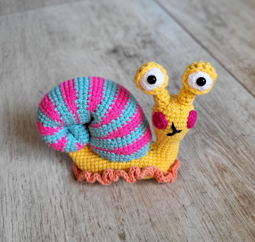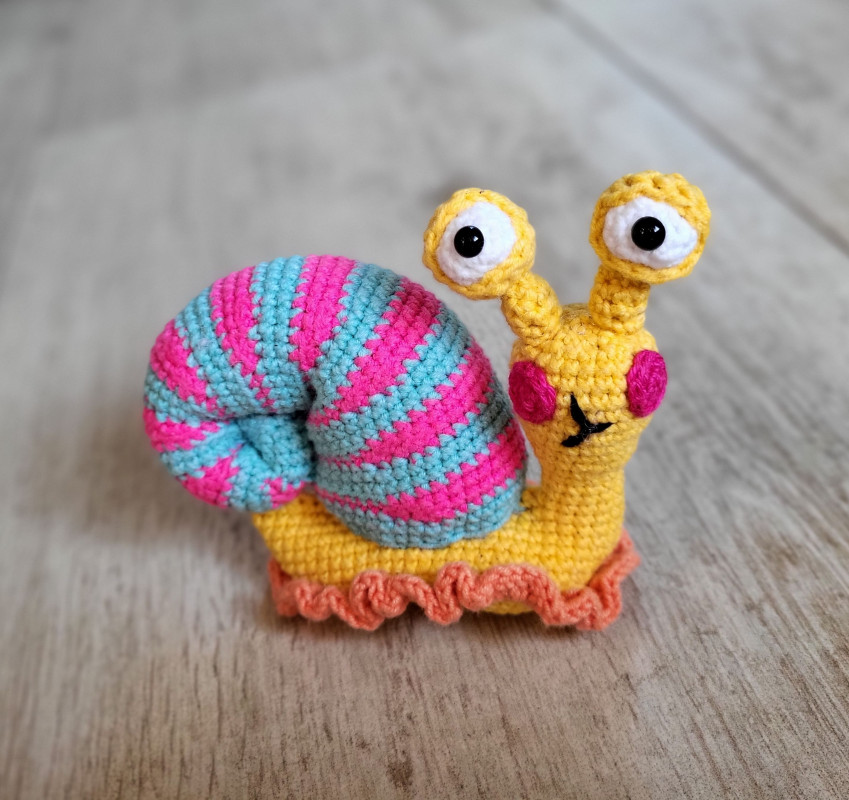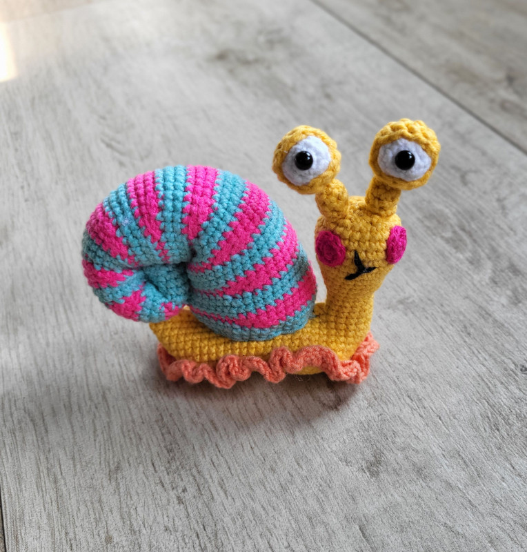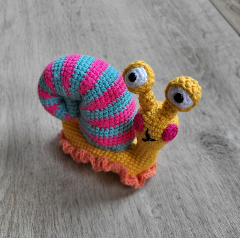 Ślimak posiada bezpieczne, plastikowe oczka.