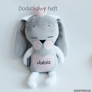 Po zakupie proszę podać imię dziecka, oraz tekst, który ma być wyszyty z tyłu króliczka, TEKST DOWOLNY.