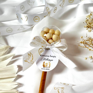 Cena zawiera patyczek, bilecik, kokardkę rypsową bądź satynową, wypełnienie, plastikową kulę.