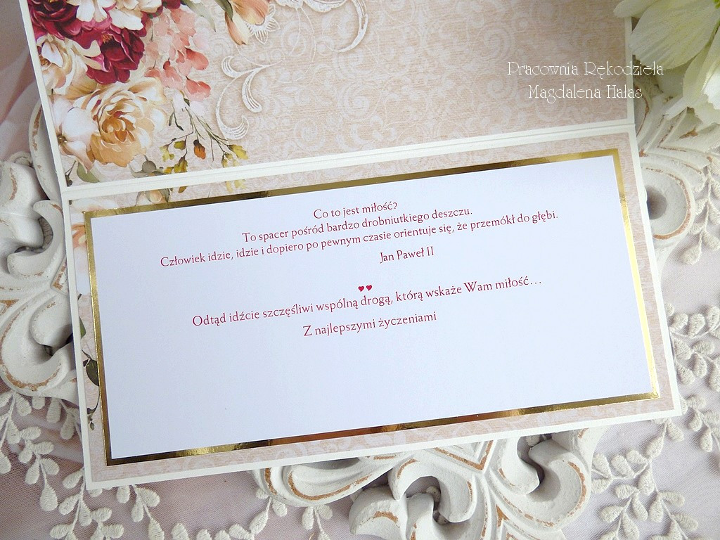 Wewnątrz kartki umieszczone są życzenia o treści: