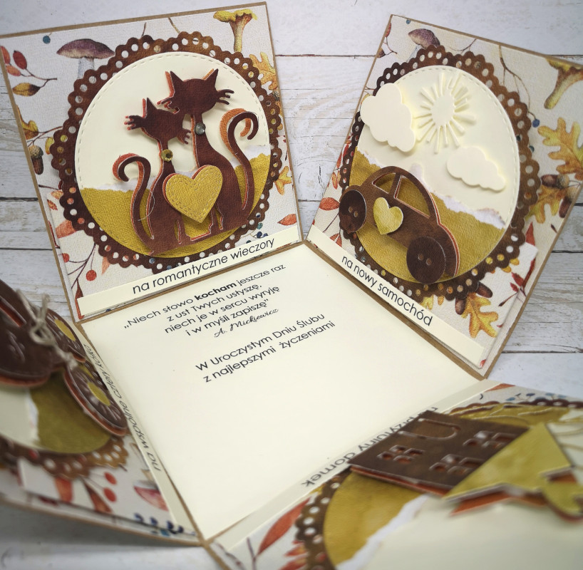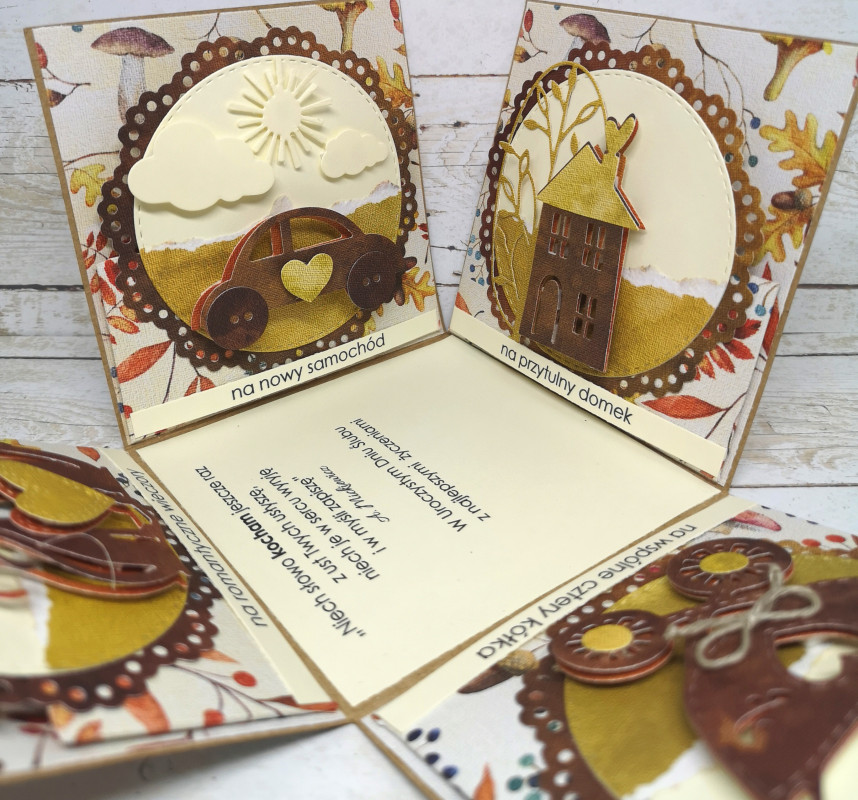 Każda ścianka to jednocześnie kieszonka na upominek w formie pieniężnej z przeznaczeniem na różne cele: