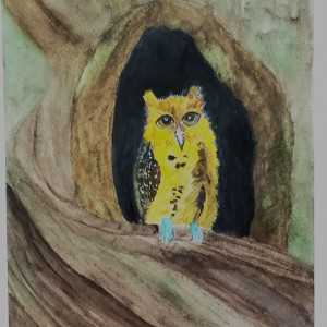 Sowa , akwarela. Format 24x32 cm