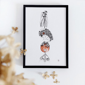Sowa Rysunek Sówka mała Ilustracja ręcznie wykonana