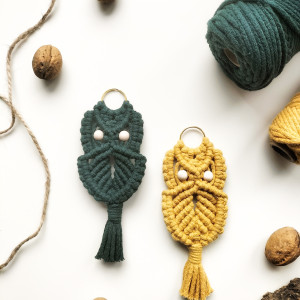 Ręcznie wykonany brelok do kluczy bądź torebki w kształcie Sowy z dodatkiem drewnianych koralików.