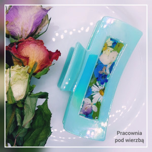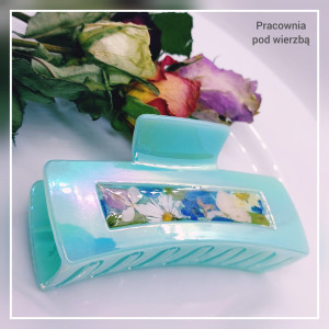 Spinka do włosów duża klamra holograficzna zielona prawdziwe kwiaty