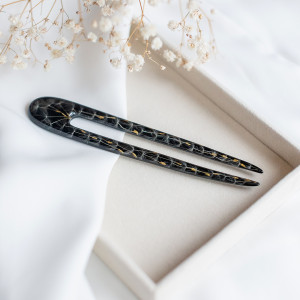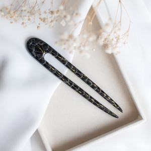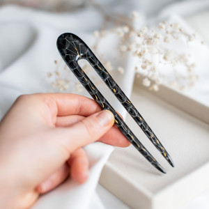 Spinka do włosów wykonana jest z żywicy epoksydowej z wykorzystaniem suszonych kwiatów.