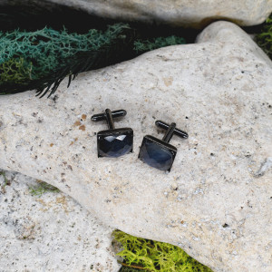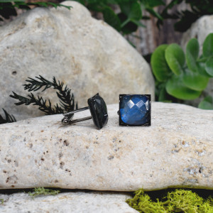 Okrągłe ręcznie wykonane spinki do mankietów z fasetowannym labradorytem