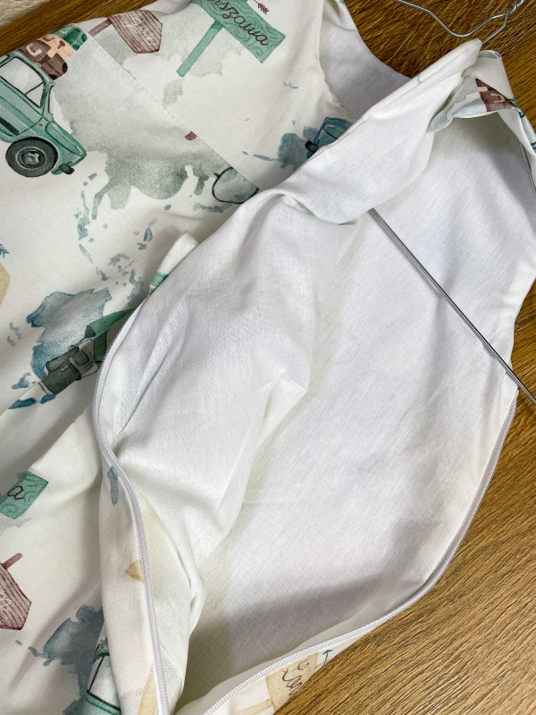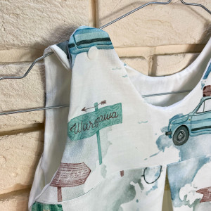 Śpiworek wykonany z 100% bawełny premium z nadrukiem, środek 100% bawełna jednokolorowa.