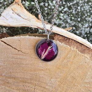 Oferuję Państwu unikalną biżuterię. Zawieszka jest wykonana z suszonych kwiatów i żywicy epoksydowej. Biżuteria jest wspaniałym i oryginalnym prezentem na lata. Do utrwalenia roślin stosuję żywicę jubilerską najwyższej jakości.