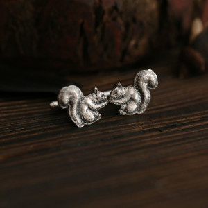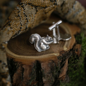 Oryginalne spinki do mankietów ze srebra próby 925 z wizerunkiem wiewiórki.