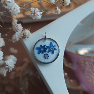 Oferuję Państwu unikalną biżuterię. Zawieszka jest wykonana z suszonych kwiatów i żywicy epoksydowej. Biżuteria jest wspaniałym i oryginalnym prezentem na lata. Do utrwalenia roślin stosuję żywicę jubilerską najwyższej jakości.