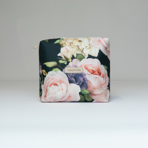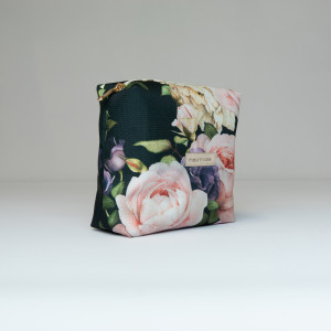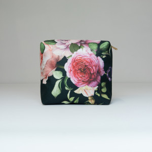 Czarna wodoodporna kosmetyczka w peonie i róże świetnie sprawdzi się na co dzień lub na weekendowy wyjazd. Jest bardzo praktyczna i pomieści najważniejsze kosmetyki.