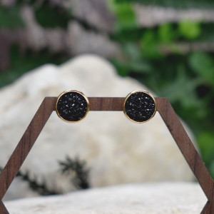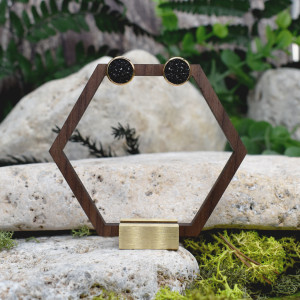 Ręcznie wykonane stalowe kolczyki w złotym odcieniu ozdobione druzami. Idealne do letnich kolorowych stylizacji boho / hippie.