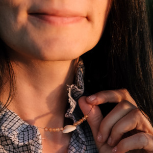 Lekki naszyjnik bez uciążliwego zapinania z muszelką dla Indywidualistki.