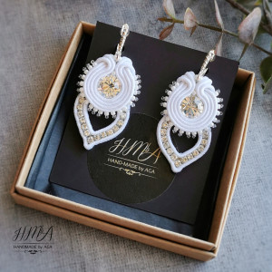 Sutaszowe kolczyki ślubne biało-kryształowe