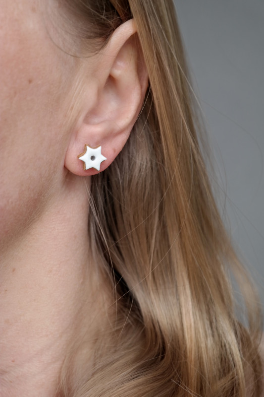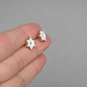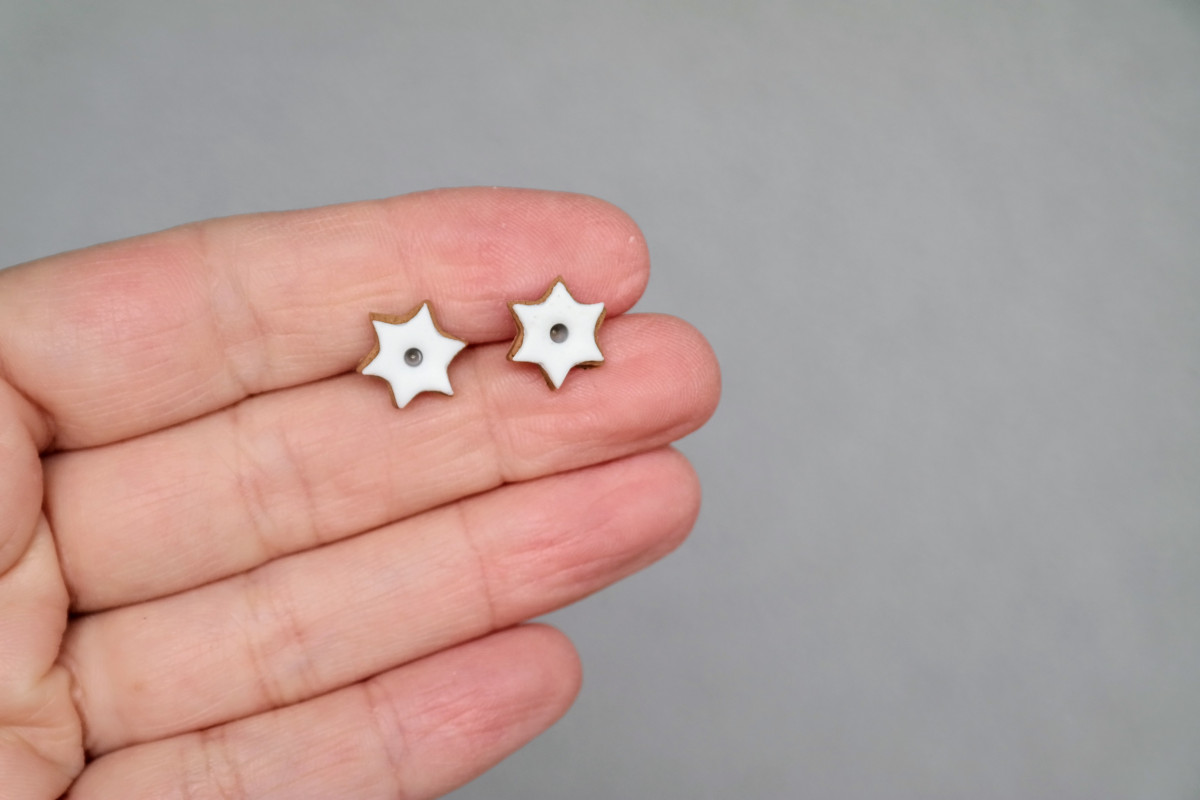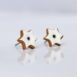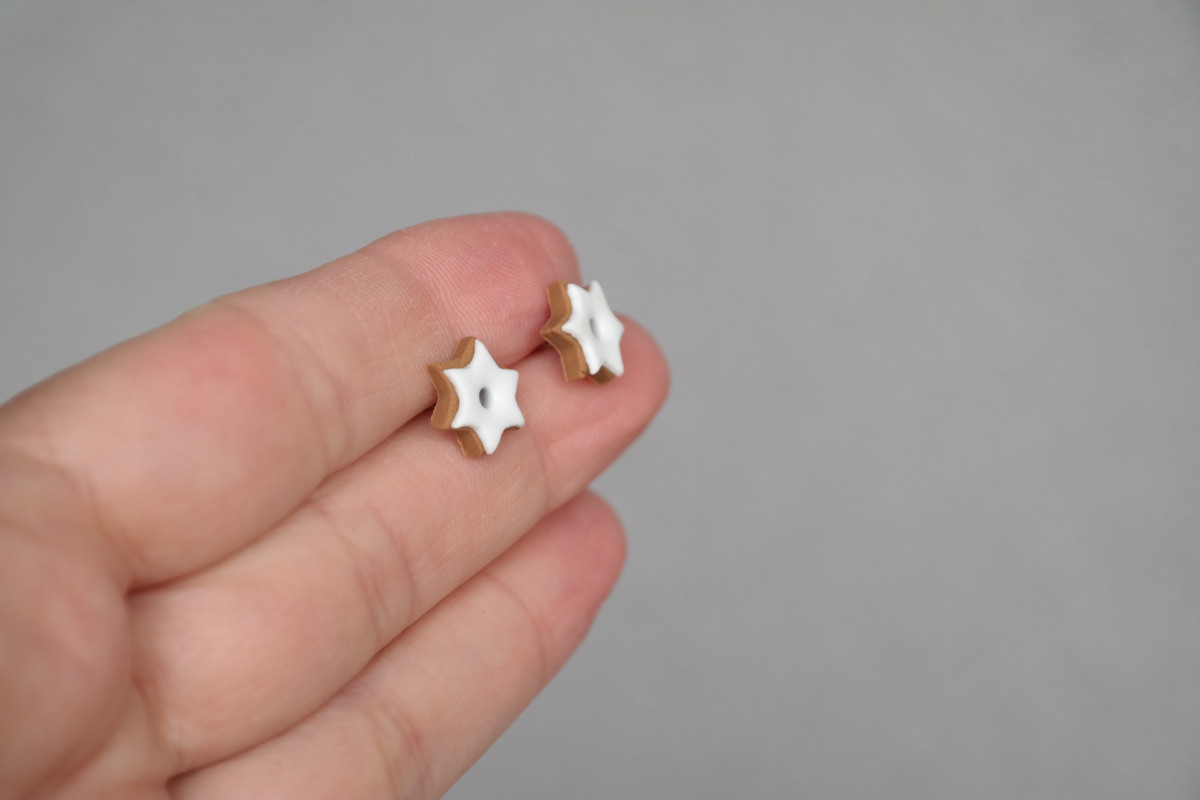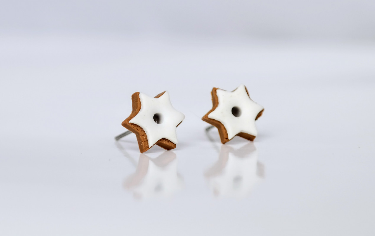 Słodkie i bardzo świąteczne kolczyki-wkrętki w kształcie białych pierniczkowych gwiazdek – idealne jako drobny prezent pod choinkę, upominek mikołajkowy czy dodatek do zimowych stylizacji. Każda gwiazdka została uformowana ręcznie, dzięki czemu każda para jest niepowtarzalna.