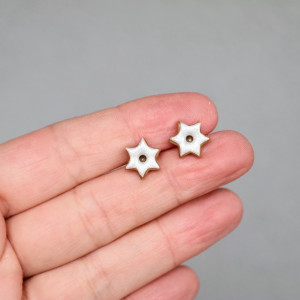 Sztyfty wykonano ze stali chirurgicznej – antyalergicznej i odpowiedniej dla wrażliwej skóry. Kolczyki są bardzo lekkie, dzięki czemu możesz nosić je przez cały dzień bez uczucia obciążenia.
