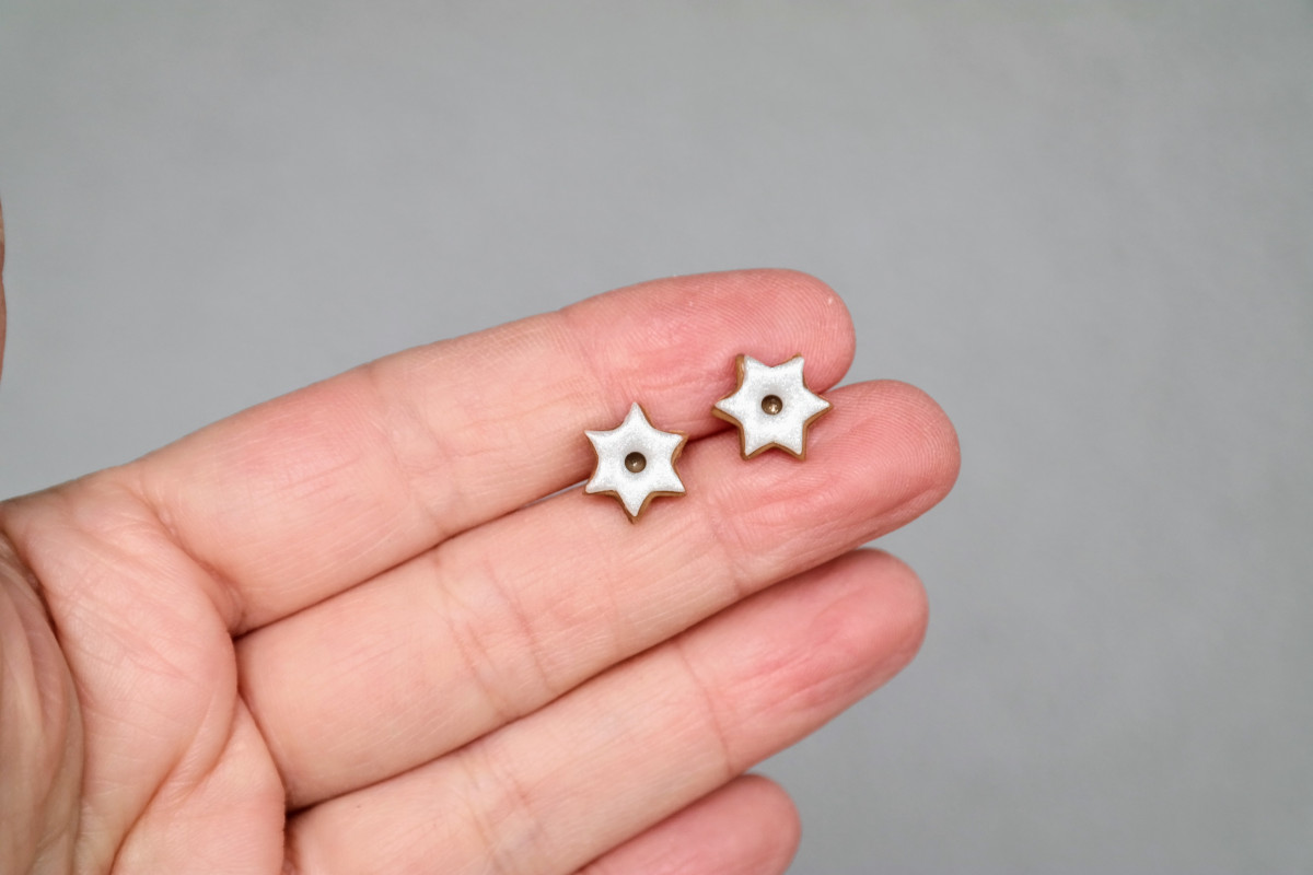 Świąteczne kolczyki pierniczki – gwiazdki z perłowym lukrem
