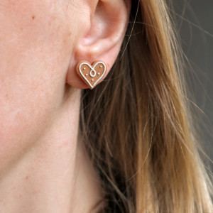 Dodaj świątecznego klimatu swojej stylizacji z tymi uroczymi kolczykami w kształcie piernikowych serduszek. Ich delikatna forma (12 mm) i precyzyjne wykonanie idealnie wpasują się w atmosferę Bożego Narodzenia. Kolczyki wykonane są z wysokiej jakości materiałów, a sztyfty ze stali chirurgicznej sprawiają, że są bezpieczne i antyalergiczne. Te świąteczne kolczyki to doskonały wybór na spotkania przy choince, zimowe wieczory i jako prezent pod choinkę dla bliskich.