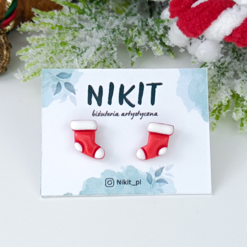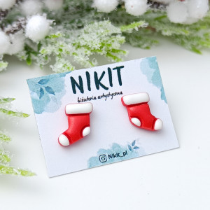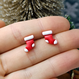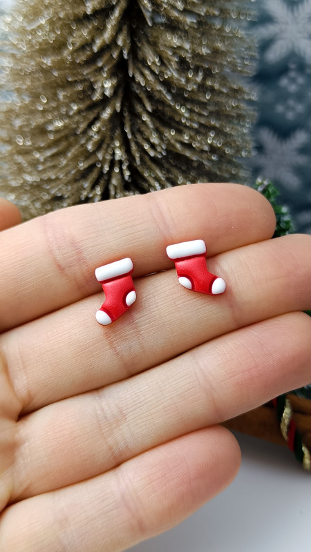 Kolczyki w kształcie uroczych, czerwonych skarpetek świątecznych, które zachwycają swoją prostotą i elegancją. Ręcznie wykonane z glinki polimerowej, z białymi detalami przypominającymi miękkie futerko, są lekkie, wygodne i idealne do noszenia przez cały sezon zimowy. Te delikatne kolczyki na sztyftach to świetny wybór dla osób ceniących subtelne, ale wyjątkowe dodatki.