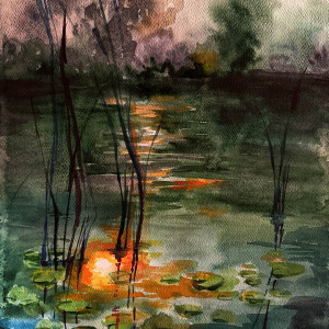 "Światło w szuwarach" akwarela, pejzaż