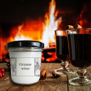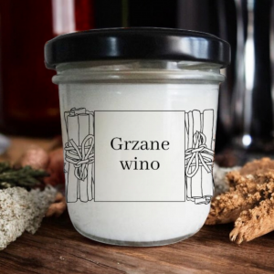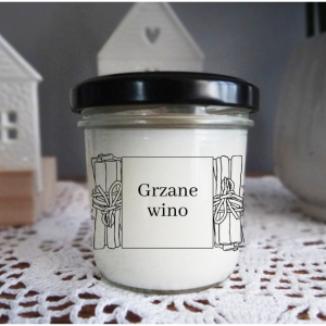 Świeca z wosku sojowego w szklanym słoju z czarnym wieczkiem o zapachu GRZANE WINO
